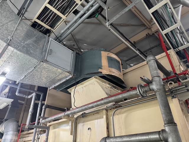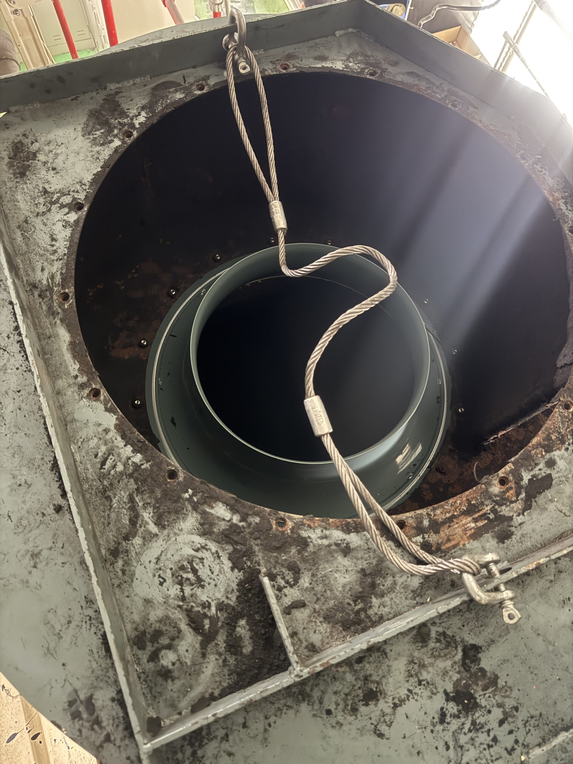 塗装設備の排気ファンの吸込みが良くないとのことで下見を行ったところ吸込み口が腐食により大半が無くなっていたため交換作業を行いました。